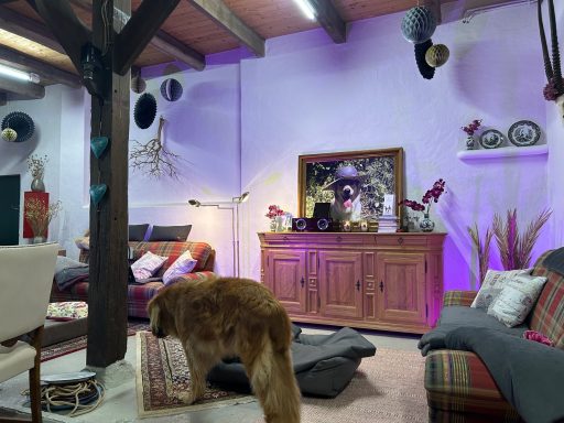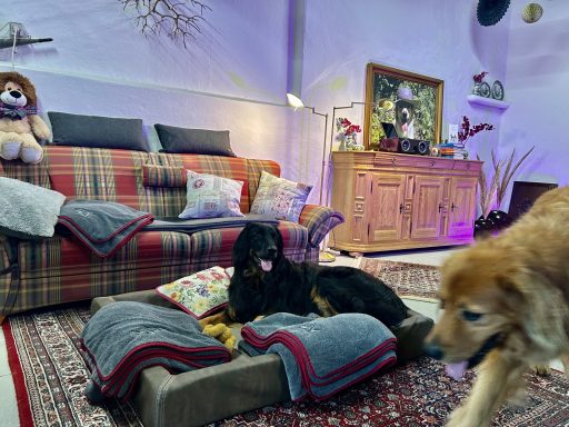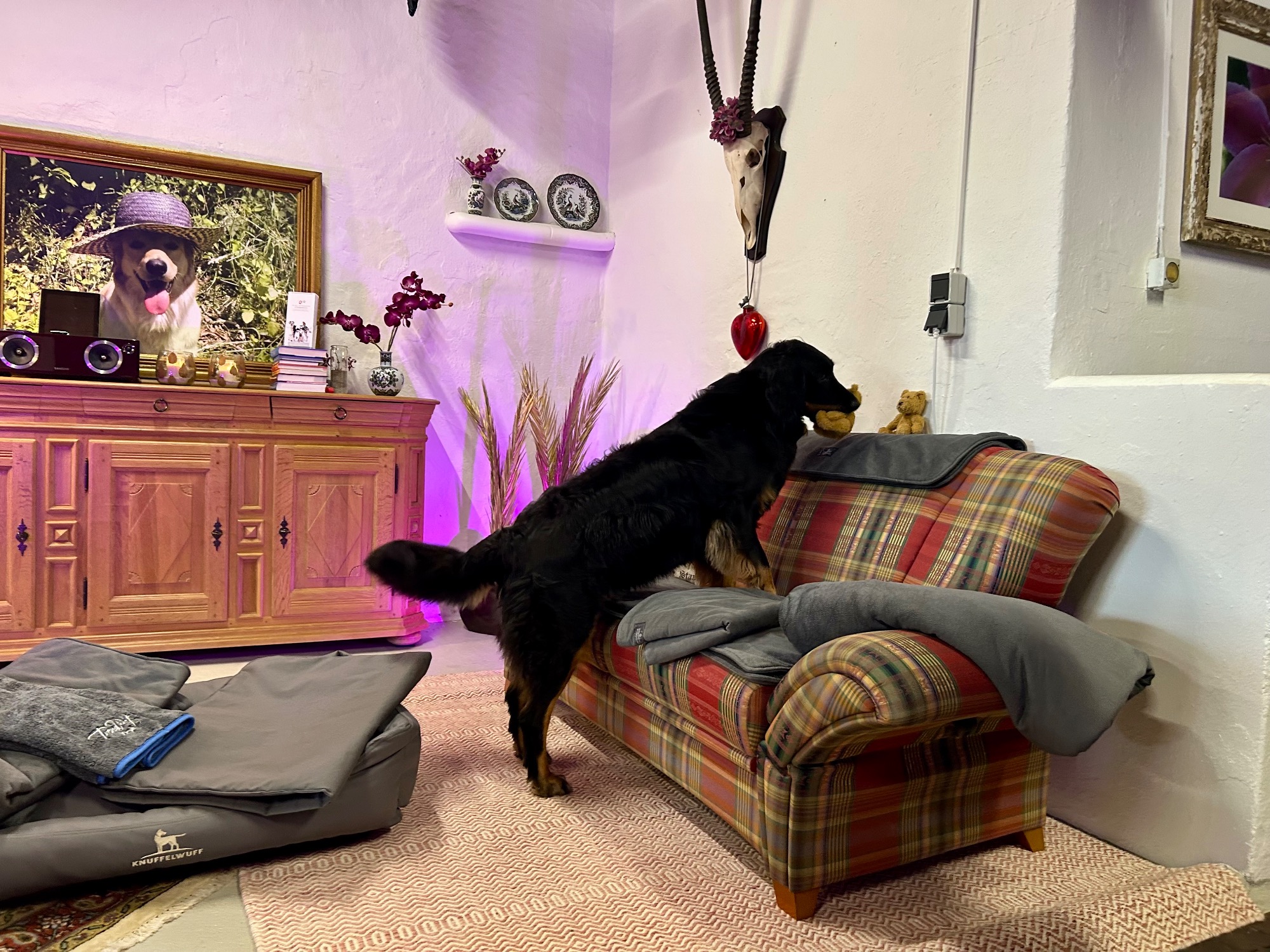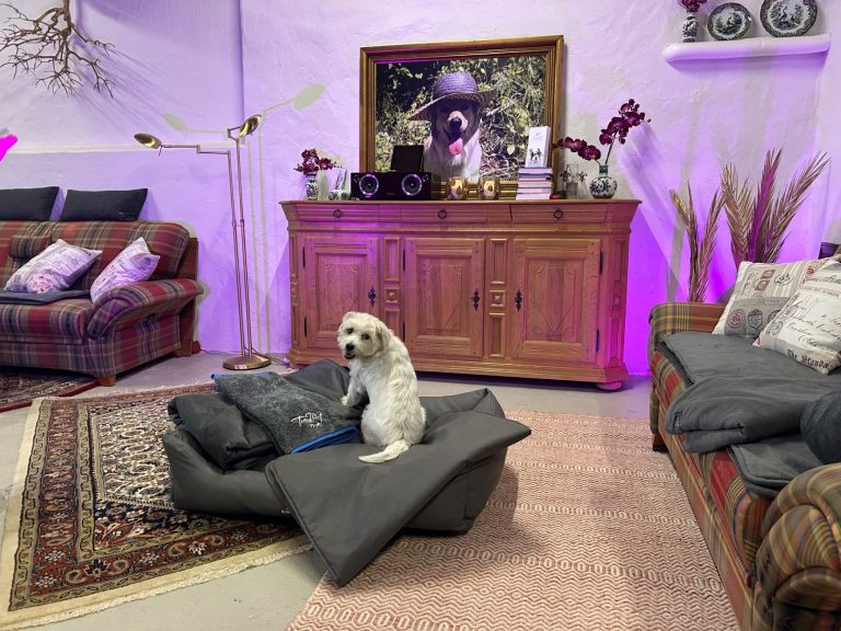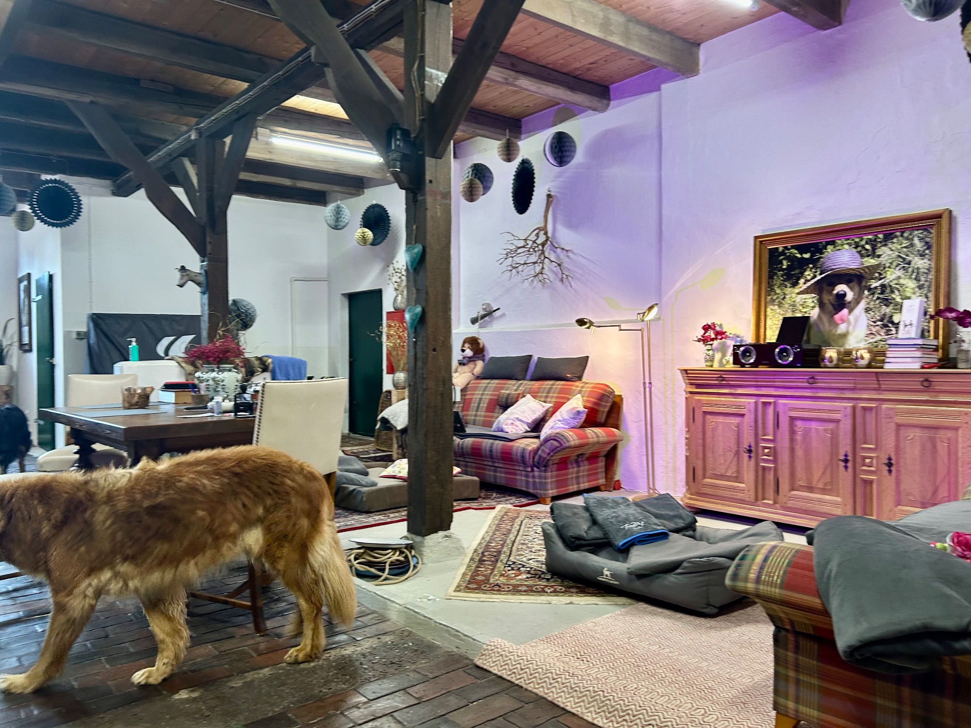 Unsere behagliche Hundediele umfasst eine großrahmige Wohnstätte für unsere Gasthunde. Sie liegt unserem Wohnbereich zentral an und ermöglicht dadurch die direkte Nähe zu uns.